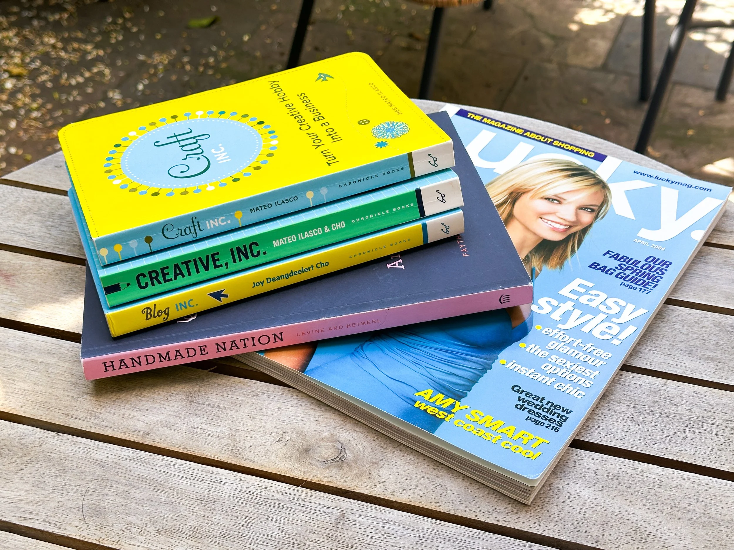 Books from the first handmade movement-era, and a Lucky magazine (published from 2000 to 2015)
